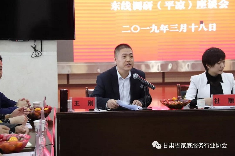座谈会由执行会长王刚主持。他说,此次调研活动旨在学习宣传全国、我省“两会”关于家庭服务业发展重要指示精神,贯彻落实省上脱贫攻坚有关要求,同时发挥省家庭服务行业协会“引导、规范和服务作用,当好政府的参谋助手”作用,了解和掌握我省市州家庭服务业的发展现状,广泛听取行业企业的意见和建议,为制定和出台我省家庭服务行业规范和行业标准积累素材,为政府部门指导家庭服务业健康、有序发展提供决策参考,推动家庭服务业行稳致远,创新发展。