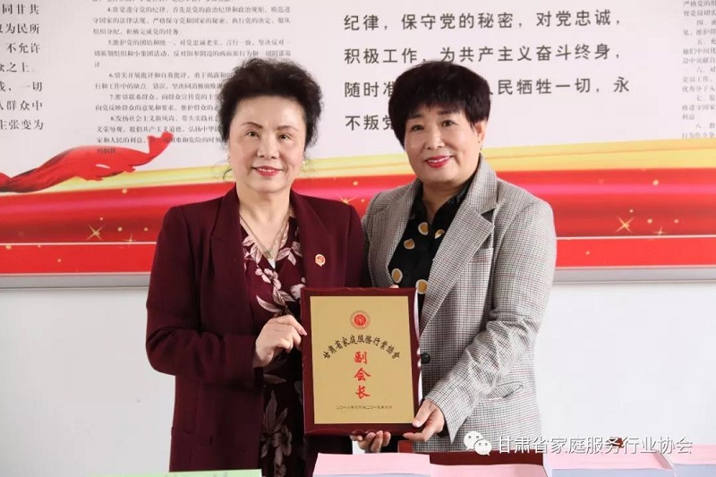 为平凉加豫月嫂护理有限责任公司总经理马玲霞颁发副会长铜牌
